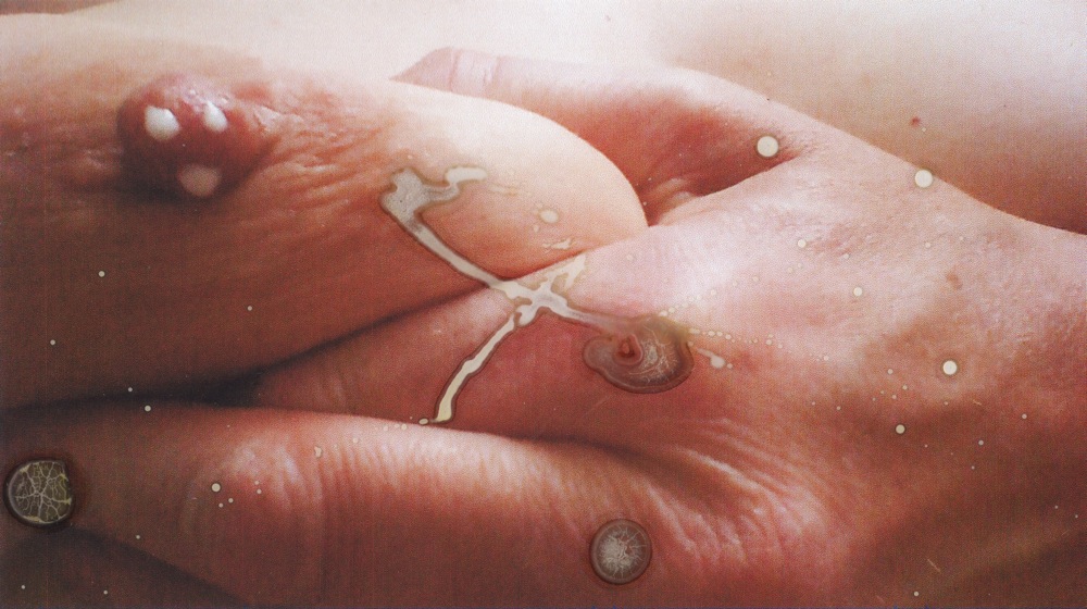 I love how these last pearls of milk appear from my nipples.I enjoy the erotic nature of these images and the parallels between the squirting of milk and the ejaculating penis. I was thinking about ejaculation being referred to as ” a little death” and photography as a medium to capture memories and the death of my milk.