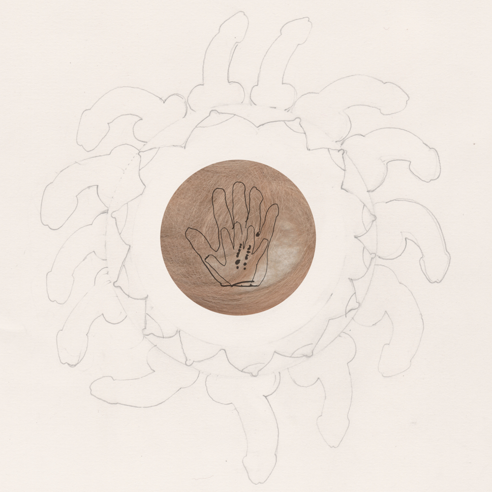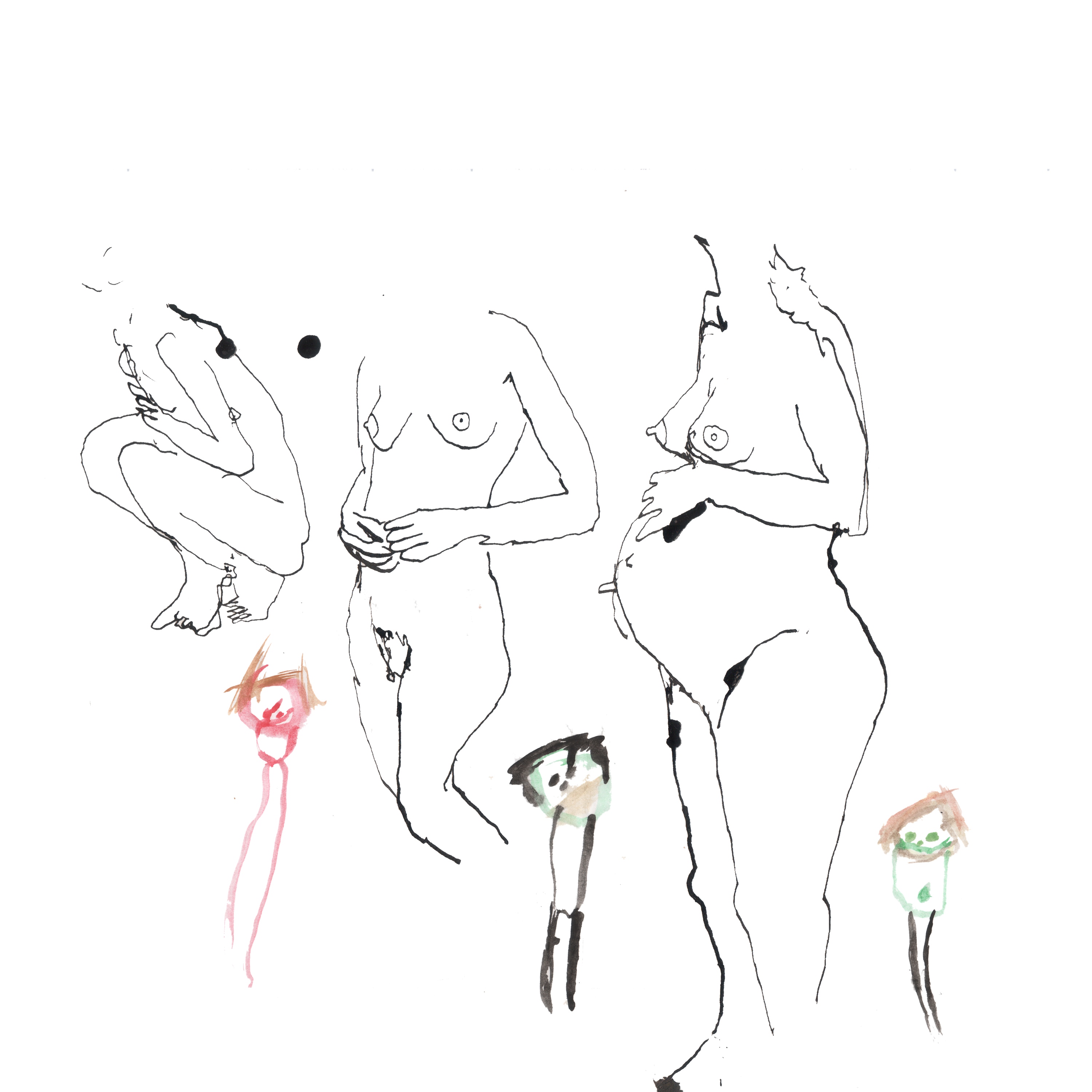Playing with embedding my children’s drawings into my own, thinking about the body of the mother and the child, gender, sexuality, nurture and protection. Toying with subverting idealised images of motherhood. Thinking about the vulnerability of the mother and the child and transmutation of these feelings through the delicacy of line.