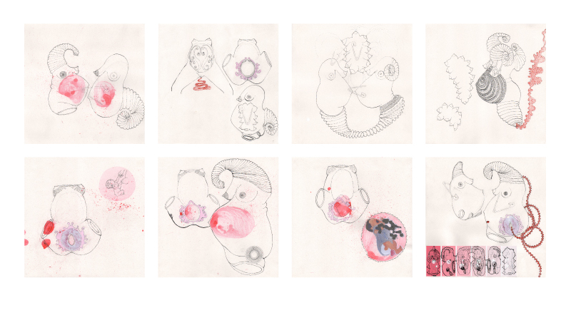 water & birth/ blood & fear are a series of drawings that aim to capture ideas related to the birth of Naoise. The drawings have been made using pen, ink, pencil and paint. Blown marks expand, burst and pop onto the surface of the paper. While making these marks I was thinking about eggs, fertilisation,...